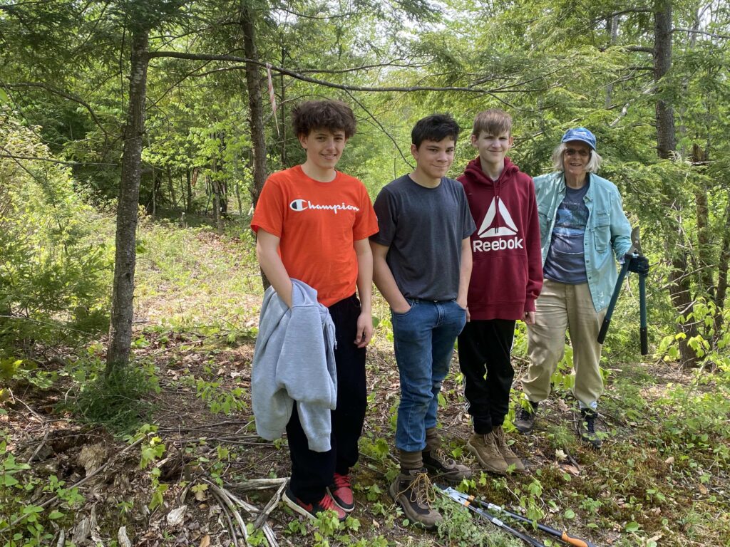 Karen Bieluch, a Practice-Based Learning Specialist in the Department of Environmental Studies at Dartmouth College who lives in Bethel, brings Dartmouth students here to study climate change and carbon sequestration. They have involved students from Telstar High School with plots on Bucks Ledge to measure tree growth over time, so we get to see college students teaching high school kids.